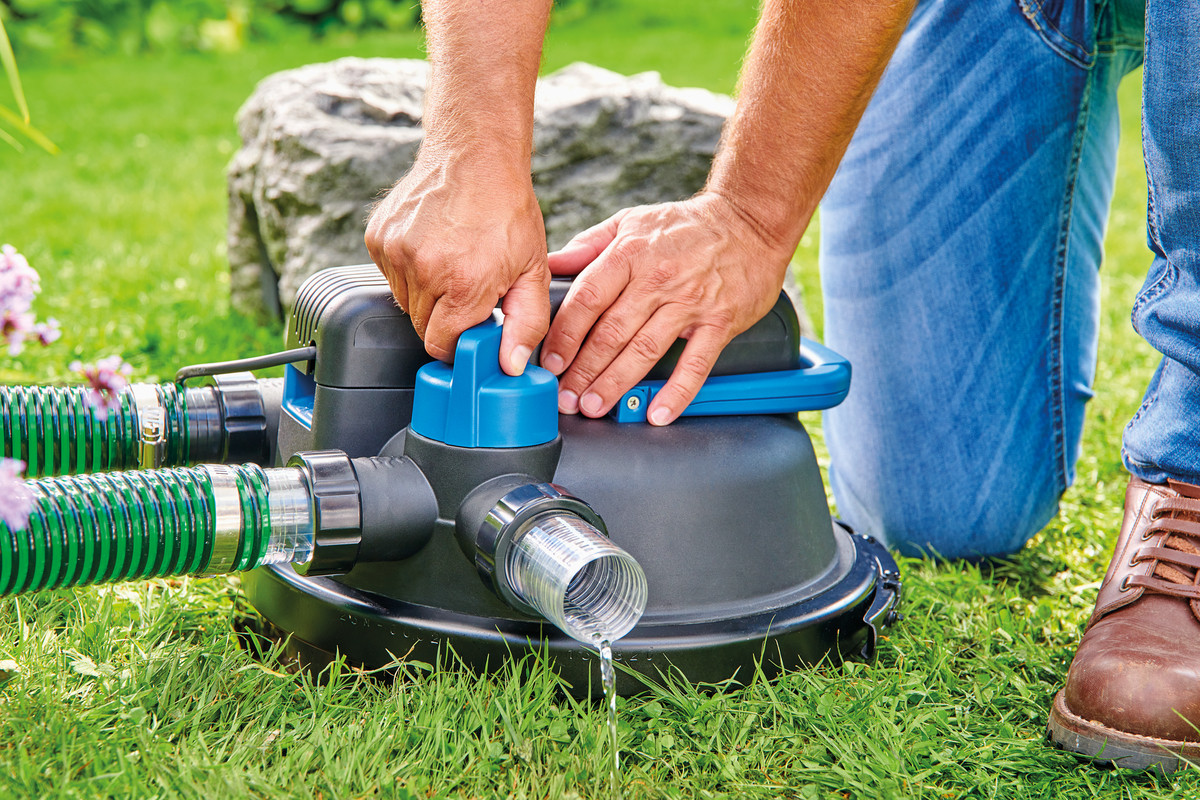 - 2-WAY VALVE: Choose whether the water flows into the pond or into the waste water after cleaning the filter