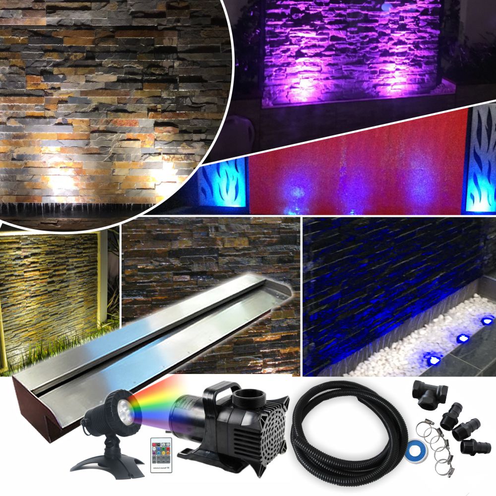 This bundled package comprising of a marine grade stainless steel waterwall spillway, a high head height pump which allows you to create a projecting effect water wall, associated fittings and a fibreglass trough to allow you to create a Wall Wash Cascade Water Wall Effect with our Kit. It's easy to connect and perfect for DIYers!